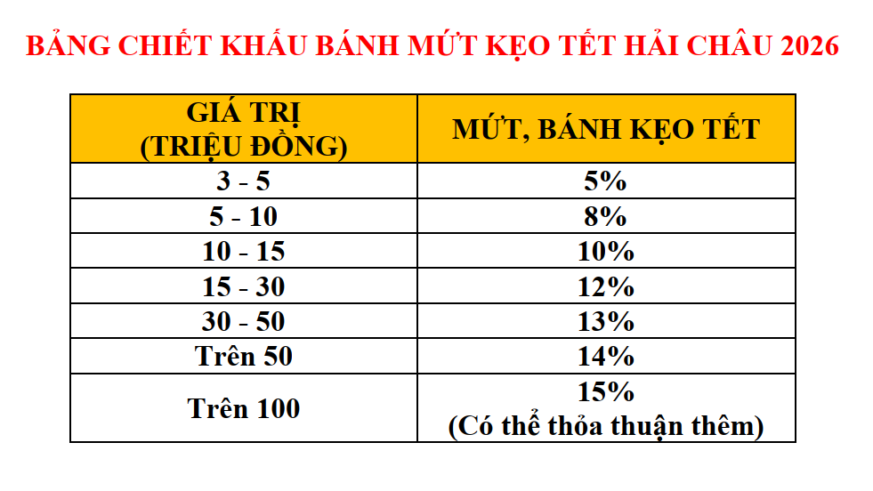 Bảng giá và chiết khấu bánh mứt kẹo tết HẢI CHÂU 2026: Click here