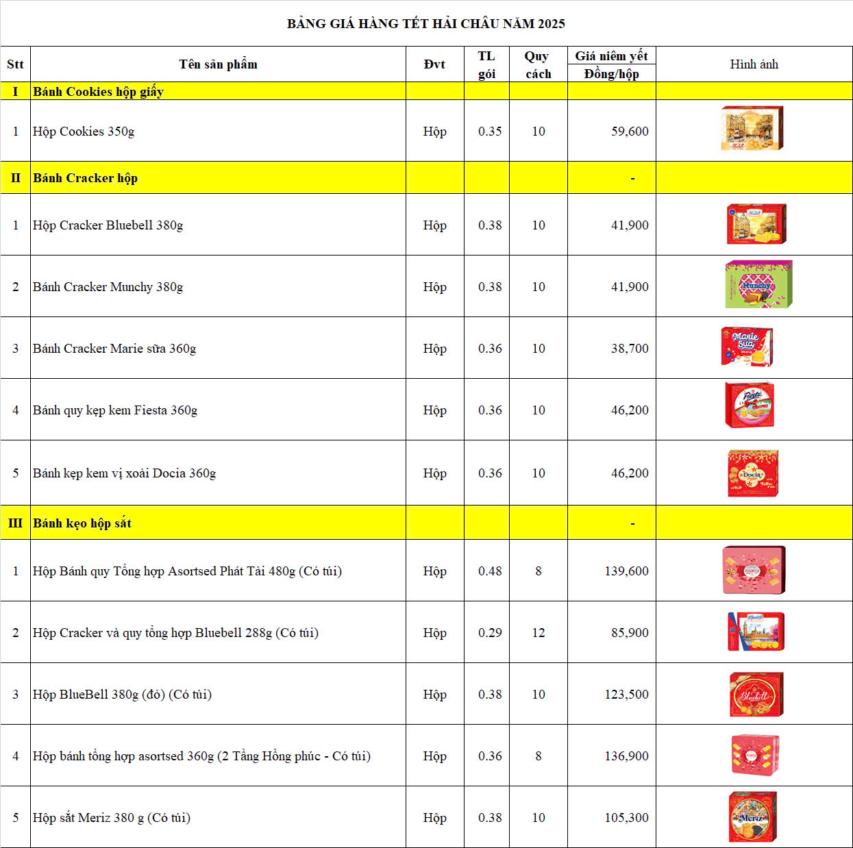 * Bảng giá bánh mứt kẹo tết HẢI CHÂU 2026 (đã có VAT):