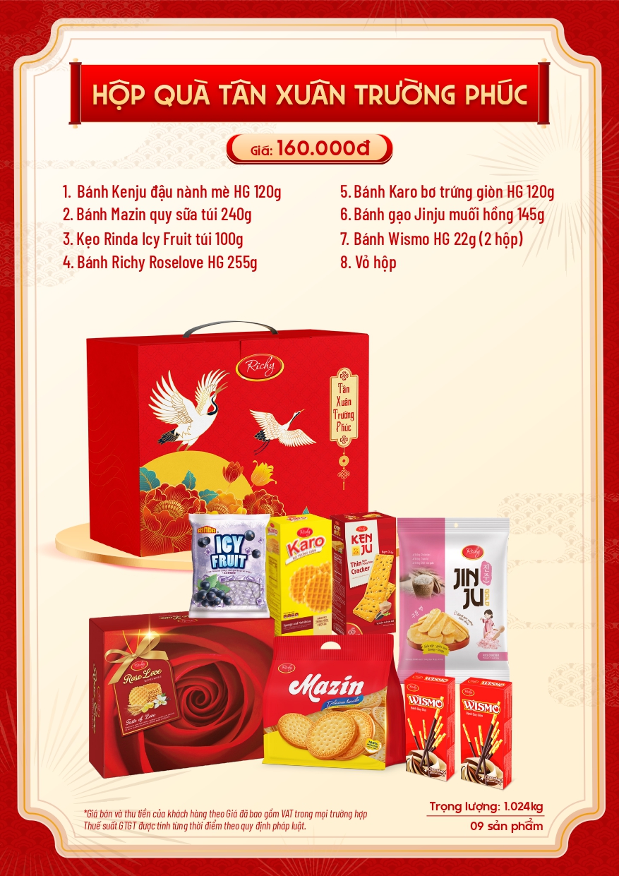 1/ HỘP CAO CẤP RICHY – HỘP QUÀ TÂN XUÂN TRƯỜNG PHÚC: 160.000 VNĐ
