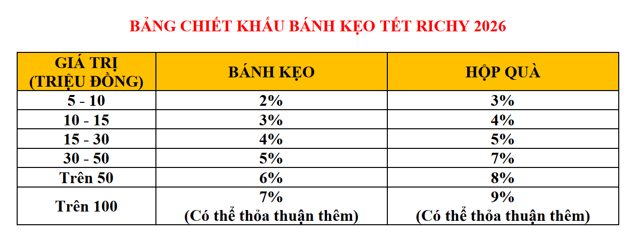 * CHIẾT KHẤU BÁNH KẸO TẾT RICHY 2026